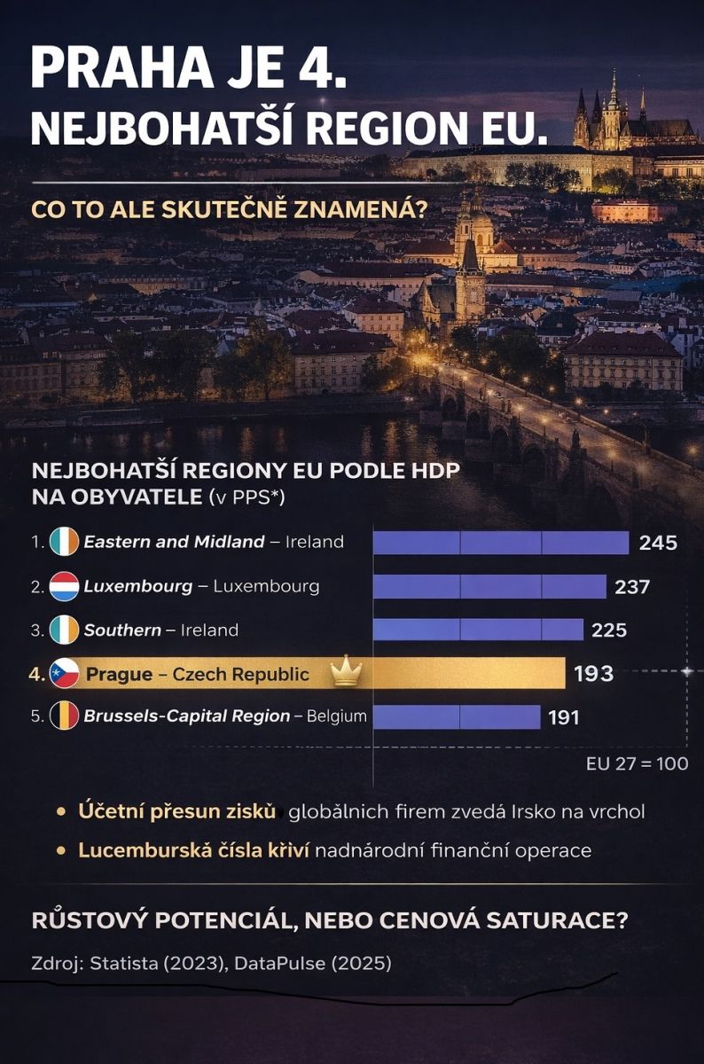 Praha byla vyhlašena jako 4. nejbohatší region EU. Co to ale skutečně znamená?